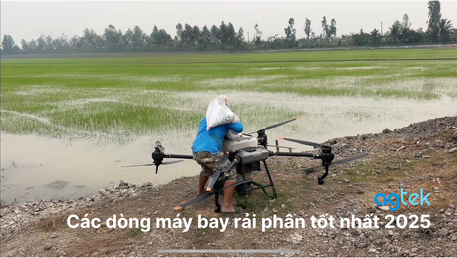 Trong năm 2025, nhiều các dòng máy bay rải phân nông nghiệp như DJI T100, T70P, T50/T40 hay XAG P100 Pro được đánh giá cao về hiệu suất và độ bền, phù hợp cho cả nông hộ cá thể lẫn đơn vị dịch vụ nông nghiệp chuyên nghiệp.