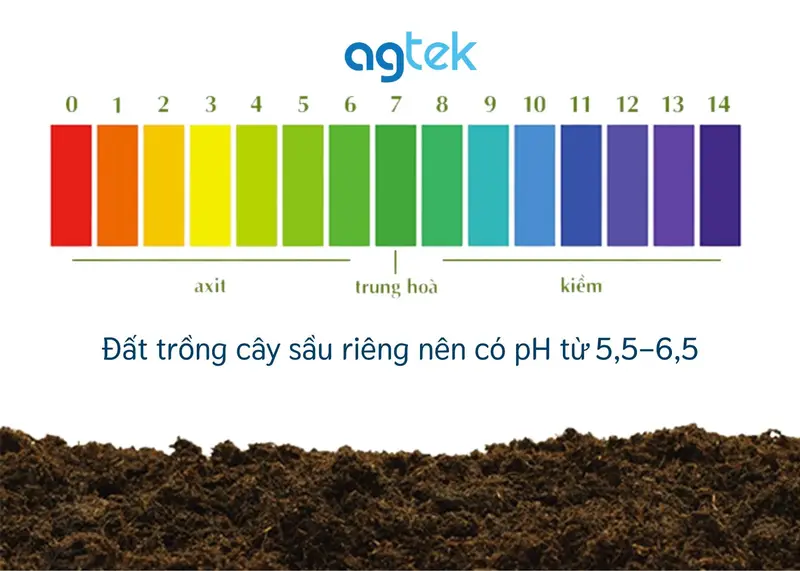 Cây sầu riêng thích hợp với đất thịt nhẹ hoặc đất phù sa, tơi xốp, giàu hữu cơ, thoát nước tốt. Đất không được nhiễm phèn, mặn, hoặc quá sét. Độ pH tối ưu nằm trong khoảng từ 5,5–6,5. Để cải thiện độ pH, nên bón vôi định kỳ mỗi năm.