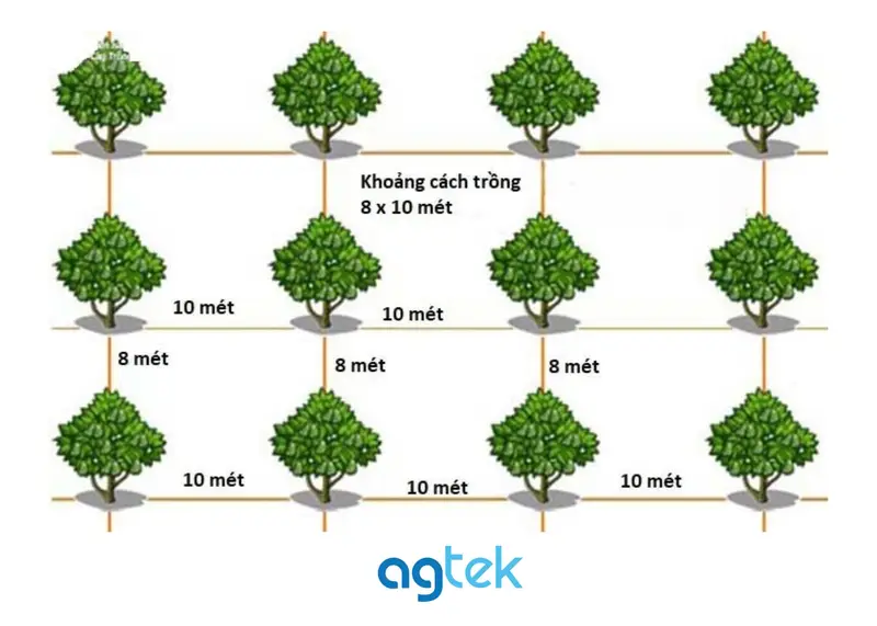 - Trồng xen: 12x12m hoặc 12x15m tùy điều kiện vườn