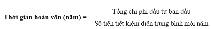 Thời gian hoàn vốn = Chi phí đầu tư / (Sản lượng điện × Giá điện)